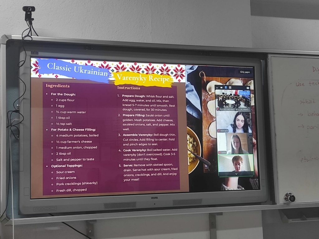 Okulumuzun etwinning projesi olan “Digital Citizenship in the Age of AI:Shaping the Future with a Click” kapsamında katılım sağladığı uluslararası bir eTwinning toplantısı, Türkiye, Ukrayna ve Bulgaristan'dan okulların bir araya gelmesiyle Zoom üzerinden gerçekleştirildi. Toplantının ana konusu, üç ülkenin kültürlerinde önemli bir yere sahip olan bahar festivalleriydi. Katılımcılar, kendi ülkelerindeki baharın gelişini kutlama geleneklerini paylaşarak kültürel bir etkileşim ortamı oluşturdular. Türkiye’den Nevruz, Ukrayna’dan Kolodiy ve Bulgaristan’dan Baba Marta festivalleri hakkında bilgiler verildi. Öğrenciler ve öğretmenler, bu festivallerin tarihçesi, kutlama şekilleri ve kültürel önemini anlatarak birbirlerine farklı perspektifler sundular. Toplantı, öğrencilerin kültürel farkındalıklarını artırmak, yabancı dil becerilerini geliştirmek ve uluslararası iş birliği deneyimi kazanmalarını sağlamak açısından oldukça verimli geçti. Katılımcılar, benzer projelerde yeniden bir araya gelme temennisiyle toplantıyı sonlandırdılar. Bu tür uluslararası projeler, öğrencilerimizin 21. yüzyıl becerilerini geliştirmelerine, farklı kültürleri tanımalarına ve dünya ile bağlantı kurmalarına önemli katkılar sağlamaktadır. Etkinlikte emeği geçen öğretmen ve öğrencilerimize teşekkür ederiz.